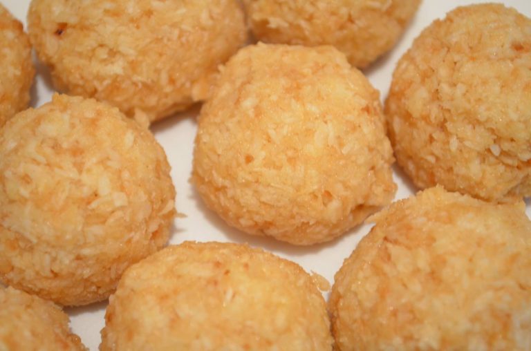 Маса для приготування коксового печива готова. Знову вмикаємо духовку на 180°С, застилаємо деко пергаментом, набираємо в окрему посудину прохолодної води та починаємо формувати кульки. Змочувати руки бажано перед кожною печенькою, щоб стружка до них не липла... З такої кількості тіста повинно вийти десь 24 кульки діаметром близько 2 см.