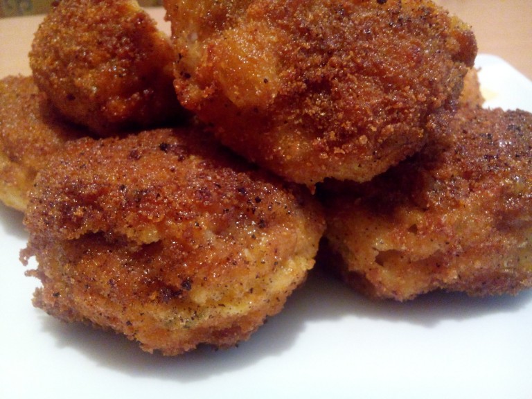 Наповнюємо запашні шапочки не менш запашною начинкою. В одну тарілку насипаємо борошно, в другій збиваємо 2 яйця, а в третю висипаємо панірувальні сухарі. Далі майже все як з відбивними) Розігріваємо побільше олії на сковороді або в каструльці. Беремо фаршировані шампіньйони, обвалюємо їх в борошні, далі в яйці, далі в панірувальних сухарях, а потім викладаємо на сковороду (в каструльку) та обсмажуємо рівномірно з усіх боків. Викладаємо обсмажені фаршировані печериці на паперовий рушничок щоб забрати зайву олію.