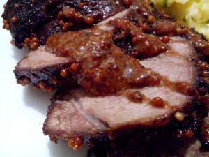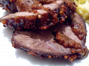 У форму для запікання кладемо мед, гірчицю і гвоздику, заливаємо теплим бульйоном і ретельно перемішуємо, щоб мед повністю розчинився. Кладемо туди м'ясо і добре вимочуємо у маринаді. В кінці посипаємо корицею, накриваємо кришкою або фольгою і ставимо в розігріту до 180°С духовку десь на 1,5 год. І от тепер, нарешті, відкриваємо пляшку прохолодного темного пива і насолоджуємося життям=)
