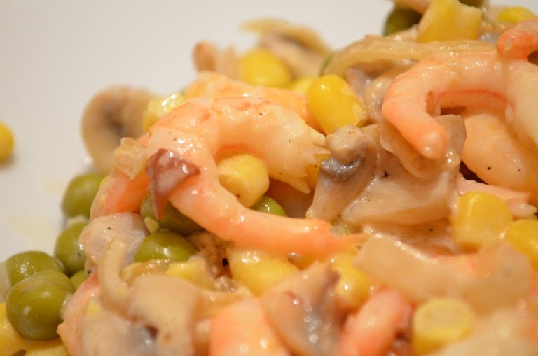 Всім любителям морепродуктів присвячується... рецепт салату з креветками, грибами та консервованими овочами!